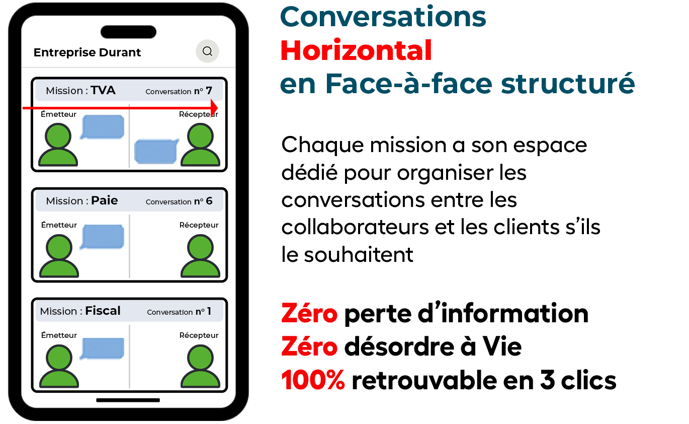 Les Face-à-face Horizontaux structurent chaque échange, Conversation et Documents.