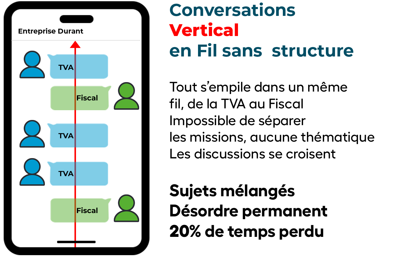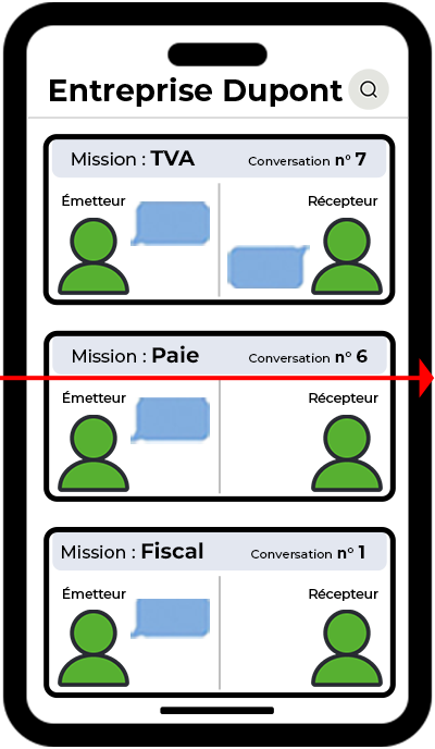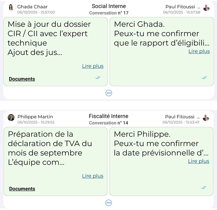 Face2Faces, la messagerie qui structure tous les échanges du cabinet autour de chaque client et de chaque mission. Chaque dossier dispose d’un groupe, organisé par sous-groupes thématiques : Comptabilité, Paie, Fiscalité, Juridique, Conseil, etc. Chaque sujet est partagé avec les bons collaborateurs, dans un espace dédié, traçable et clair. Si besoin, certains sous-groupes peuvent être ouverts au client, de façon ciblée et sécurisée.