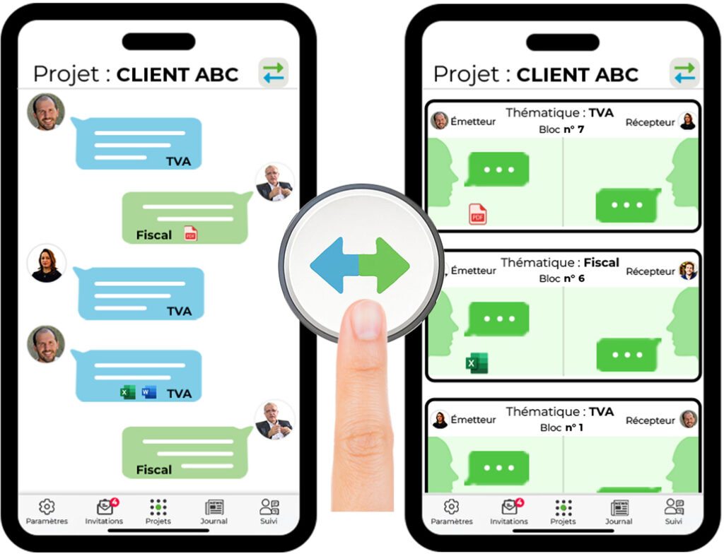 Face2Faces, structure les échanges de chaque dossier juridique en sous-groupes : Constitution du dossier, Rédaction d’actes, Relations clients ou adverses, Expertises, Procédures, Appels, Facturation, etc. Chaque affaire devient un groupe numérique autonome, où tous les échanges, documents, délais et validations sont tracés, partagés et sécurisés.